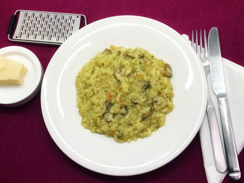 Schnell gemacht und superlecker: Ein schlotziges Risotto mit Champignons. Ich weiß gar nicht, warum sich manche Leute da so schwer tun. Allerdings solltet Ihr Euch nicht zu weit vom Herd entfernen. Denn ohne Umrühren geht es nicht.